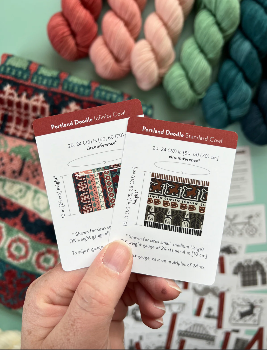 Roses, vélos, donuts, ponts, silhouettes de ville, lunettes de hipster, moustaches, bottes de randonnée, chemises à carreaux, parkas, chutes de Multnomah… et bien plus encore ! Le moyen ultime pour stimuler votre créativité en jacquard ! Utilisez ces cartes à motifs flexibles à combiner pour composer et organiser visuellement le motif de jacquard parfait, du début à la fin.